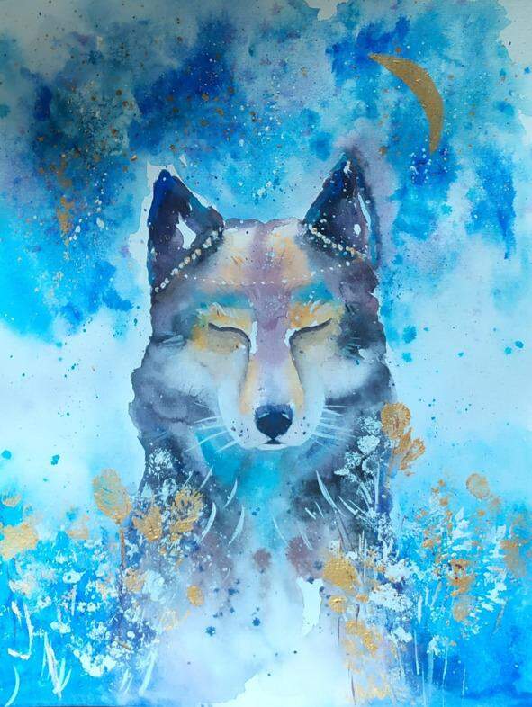 И вдруг на темном, синем небе она увидела как-будто видение: умиротворенный, спокойный Волк сидел под звездным небом и улыбался. Волшебный образ светился счастьем и гармонией.