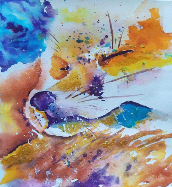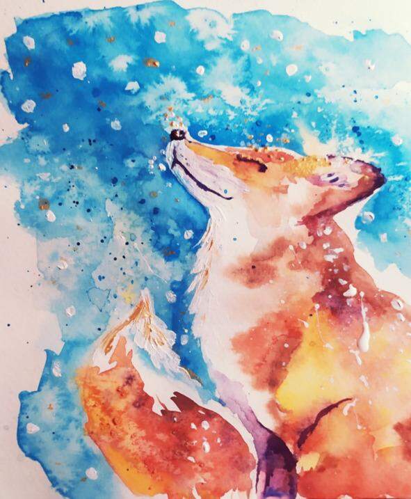 Ее шубка поблескивала золотом, а снежинки, застывшие на хвосте и спинке, дополняли красоту и очарование. Лисичка молчала и, закрыв глаза, сидела, подняв свою довольную и красивую мордочку.