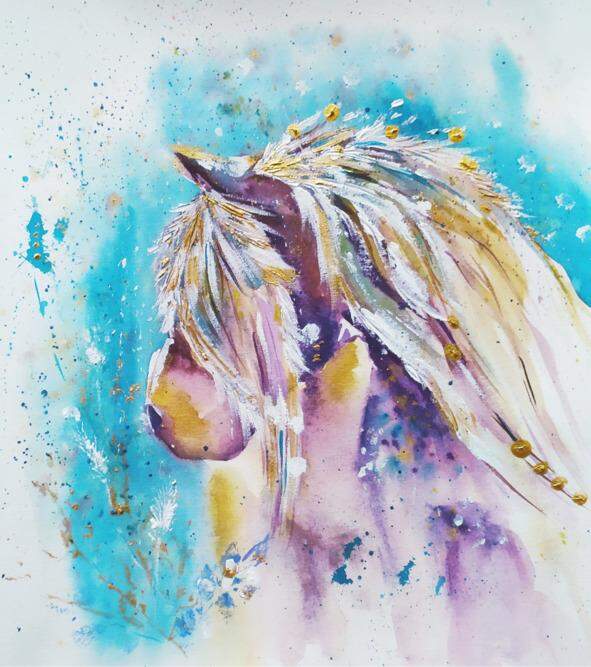 И вот в морозном тумане появилась необыкновенная Лошадь. Она была воздушная и невесомая, грациозная и невероятно умиротворенная. Ее великолепная снежная грива была украшена золотыми бусинами.