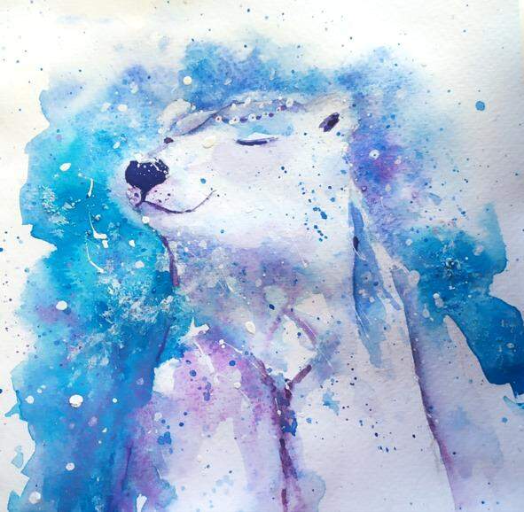 На большой льдине восседал Белый Медведь. Он был спокоен и неподвижен. Мишка слегка улыбался, глаза его были закрыты, а на голове красовалось прекрасное украшение из голубых и золотых льдинок.