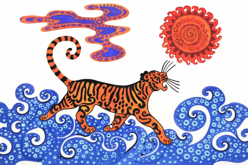 Вот спряталось Солнце за тучку и стало в воду заходить. Крикнул тогда тигрёнок: