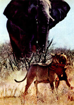 Не следует, однако, думать, что только львы отбирают у гиен добычу. Случается и наоборот, хотя гиен принято считать трусливыми. Однажды ночью мы видели, как две львицы поедали убитую ими зебру. Неожиданно нагрянули гиены, поодиночке и парами. Вскоре их набралось штук пятнадцать. Глаза их алчно горели в свете моего фонарика. Около полуночи гиены поднялись точно по сигналу и со страшным ревом и рычаньем двинулись на львиц. Львицы пустились наутек.