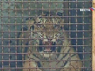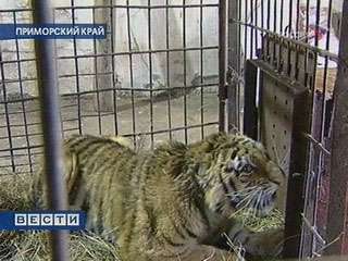 Вчера, 09.03.2007, по телефону сообщили о то, что в доалеком селе Богополь во дворе была задавлена собака и в ее будке сидит тигр и рычит на всех приближающихся. В тот жечас туда выехали наши сотрудники и через пару часов уже на автомашине тигричка следовала в с. Раздольное.