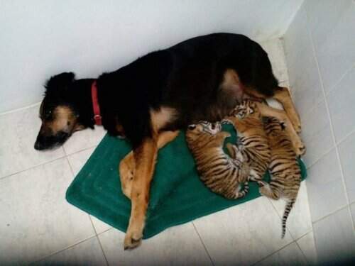 Практически все местные хищники породы кошачьих отказываются от своих детей. Да и сама Багира два года назад наотрез отказалась кормить малышей. Тогда пришлось экстренно искать собаку, которая сможет снабдить тигрят молоком. Помогла бельгийская овчарка. В этот раз ветеринары решили подстраховаться и заранее найти кормилицу.