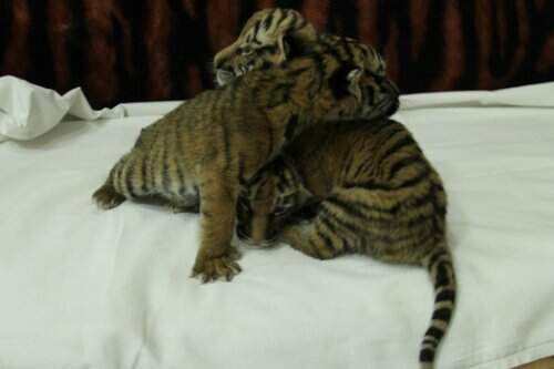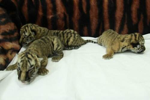 Три тигренка — две девочки и мальчик — родились в сочинском зоопарке санатория «Октябрьский» у 7-летней тигрицы Багиры и ее возлюбленного 15-летнего ветерана цирковой арены Батыра.
