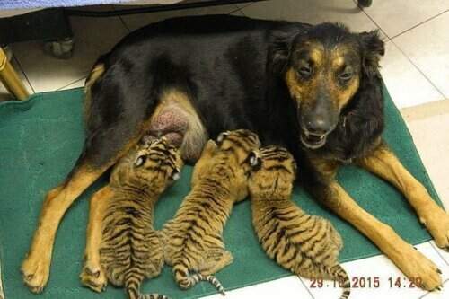 У тигренка, от которого в двухнедельном возрасте отказалась мама, теперь несколько приемных родителей — люди и собаки! Детеныш родился в зоопарке в…
